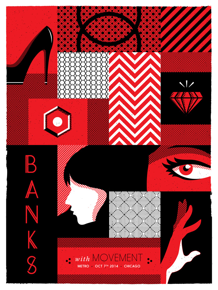 18” x 24” 2-color screen print for Banks’ October, 2014 show at The Metro, Chicago.